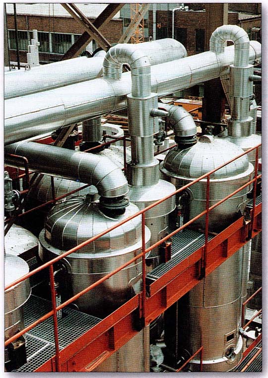 蒸發(fā)設(shè)備可分為普通多效蒸發(fā)器和閃蒸設(shè)備。Ebner閃急蒸發(fā)(簡稱閃蒸)設(shè)備是一種高效的多級連續(xù)真空蒸發(fā)設(shè)備,尤其適用于蒸發(fā)能力在5t/h以上,閃蒸設(shè)備因為其蒸發(fā)能力強(qiáng)、蒸汽耗用量小已在國內(nèi)廣泛推廣使用。酸浴閃蒸的特點是: