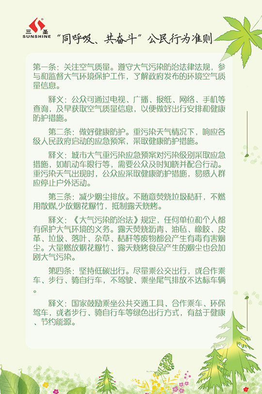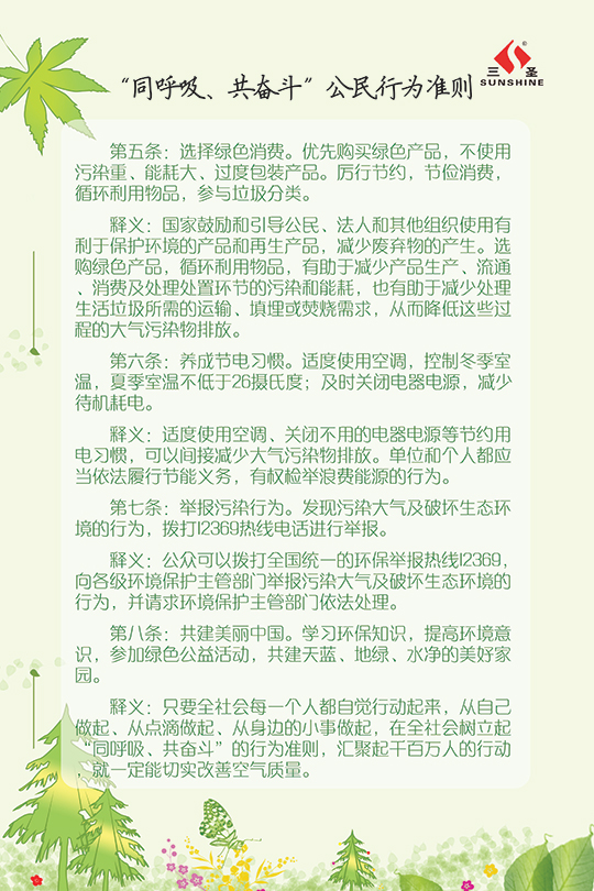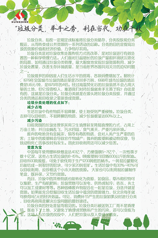 今年“三圣環(huán)保日”的主題為“三圣助力大環(huán)保,員工踐行小環(huán)?!保覀兊目谔?hào)是:“踐行環(huán)保?從我們身邊的小事做起”。