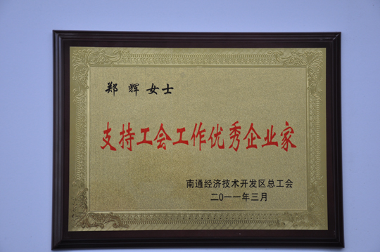 今年,開發(fā)區(qū)“支持工會工作優(yōu)秀企業(yè)家”評選工作盛況空前,候選人之間競爭激烈。我公司工會委員會申報的候選人、公司總經(jīng)理鄭輝,憑借其對工會工作細(xì)致認(rèn)真的鼎力支持,最終得到了區(qū)總工會的高度認(rèn)可,成為“支持工會工作優(yōu)秀企業(yè)家” 榮譽(yù)稱號八位獲得者之一,也是唯一的一位女性企業(yè)家。在此,我們?nèi)w三圣人都應(yīng)該向她表示由衷的祝賀!