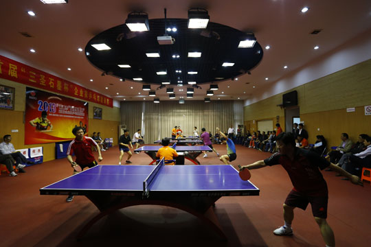 5月18日下午1點鐘,初夏的南通籠罩在蒙蒙細(xì)雨之中,在市供電公司的乒乓球館里,人頭攢動,人聲鼎沸,2013年南通市首屆“三圣石墨杯”企業(yè)家乒乓球邀請賽在這里隆重舉辦。比賽現(xiàn)場集聚了相當(dāng)實力的16企業(yè)乒乓球精英,更有一批通城頂級教練、陪練現(xiàn)身賽場,組成陣容強(qiáng)大的“后援團(tuán)”,場面之壯觀、競爭之激烈成為南通乒乓球賽史的又一新標(biāo)桿。